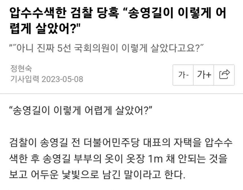 검찰이 당혹했다는 송영길 의원 집 풍경