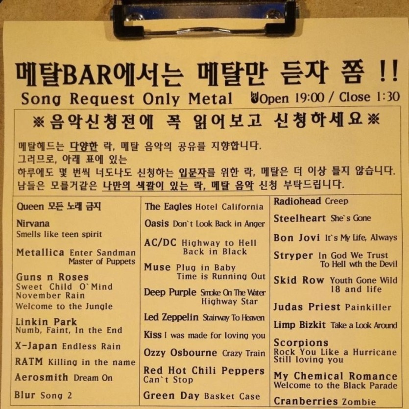 메탈 Bar에서 신청하면 안 되는 곡들 rh1 0 59 0 2025.06.10 12:15 하나같이 명곡들 뿐이네요...;(오늘은 스콜피언스의 Rock You LIke a Hurricane 들어봐야겠습니다...;) 0