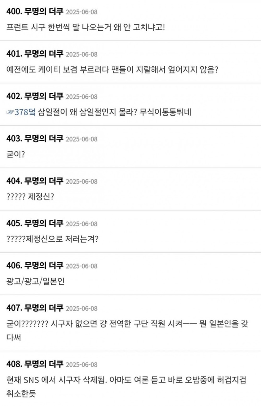 SNL 모모코 시구에 발작하는 커뮤 rh1 0 46 0 2025.06.09 23:15 자랑스러운 위국헌신 애국시민 커뮤니티 더쿠..?????????????????? SNL 모모코 시구에 발작하는 커뮤 0