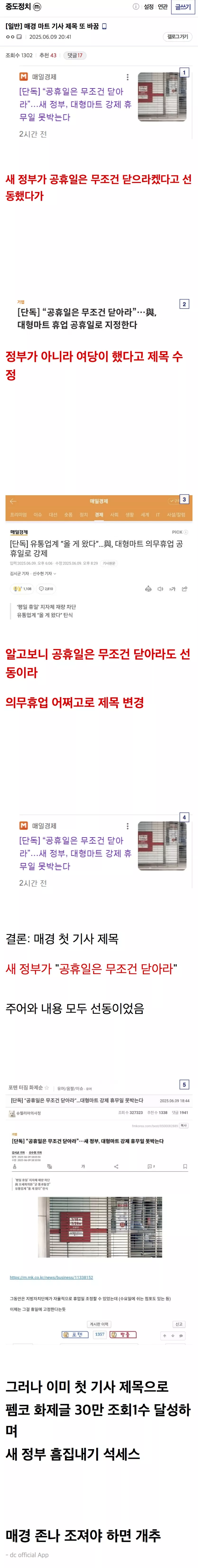 오늘 매일경제 가짜뉴스 선동한것 정리