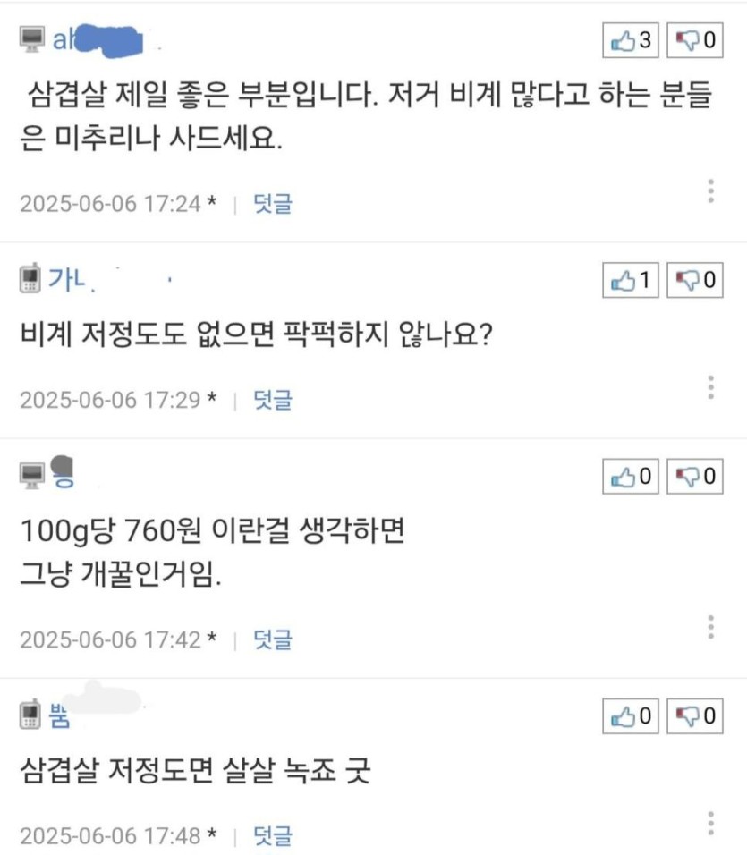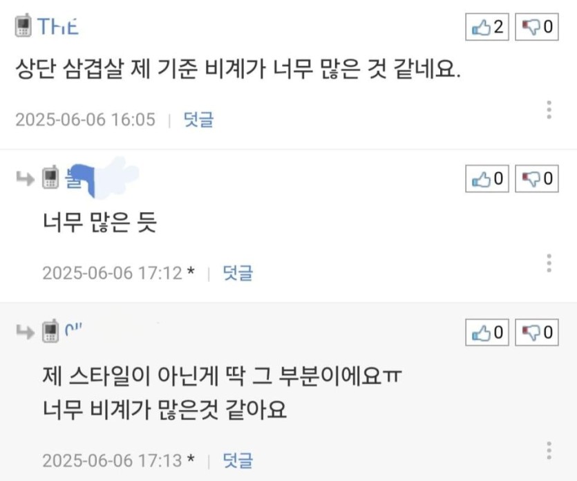 비계가 너무 많다 vs 적당하다