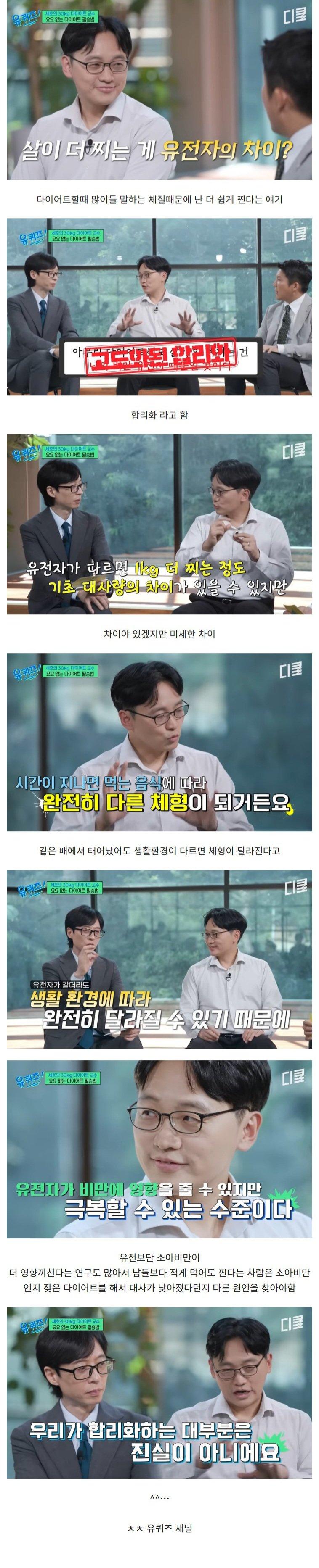체질 때문에 살이 더 쉽게 찐다는 건 핑계라는 교수님.jpg
