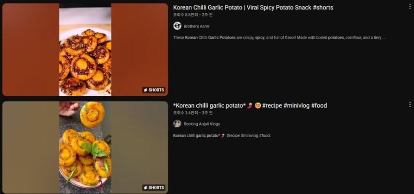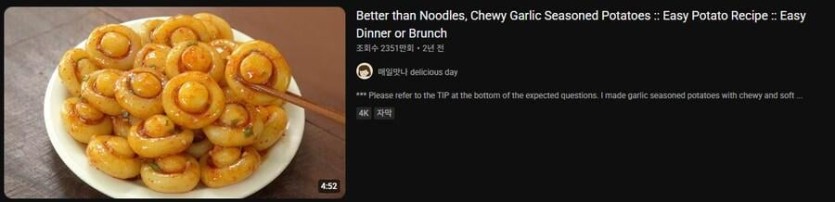 해외에서 핫했던 한국?음식 ㄷㄷㄷ rh1 0 127 0 2025.06.09 14:45 코리안 칠리 갈릭 포테이토라는 음식 2년전 매일맛나 라는 유튜브 채널을 통해 알려진 것으로 추정되며 감자 옹심이를 동글게 말아 소주병으로 버섯모양으로 만드는게 포인트인맵달쫀득한 볶음 감자옹심이라 나름 글루텐프리기도 하고 뭔가 비주얼도 좋아서 그런지 2년전부터 지금까지 꾸준히 영상이 올라올 정도로 정말 흥한 한국?음식임 외국인 : 와 이게 뭐에요 맛있겠다 한국인 : 와 이거 정말 뭐지?? 0