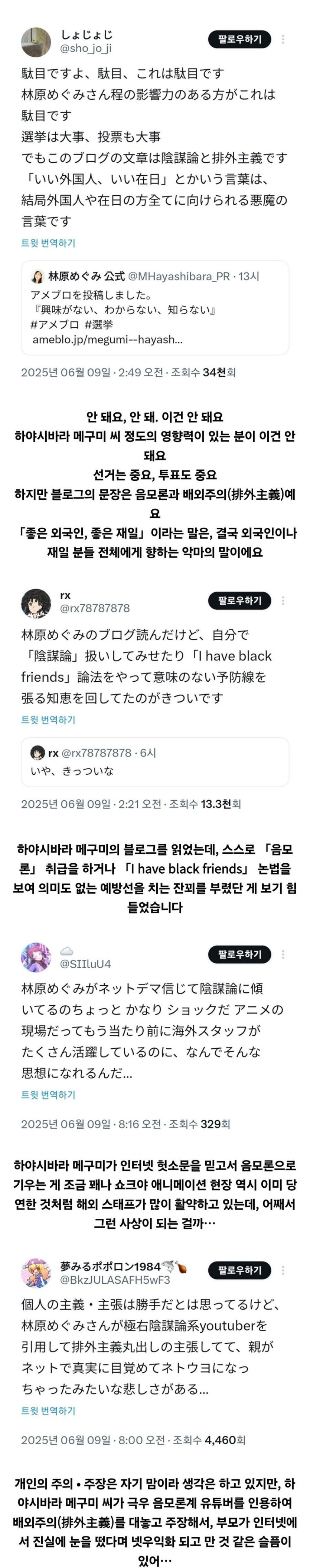하야시바라 메구미 혐한논란 일본 반응