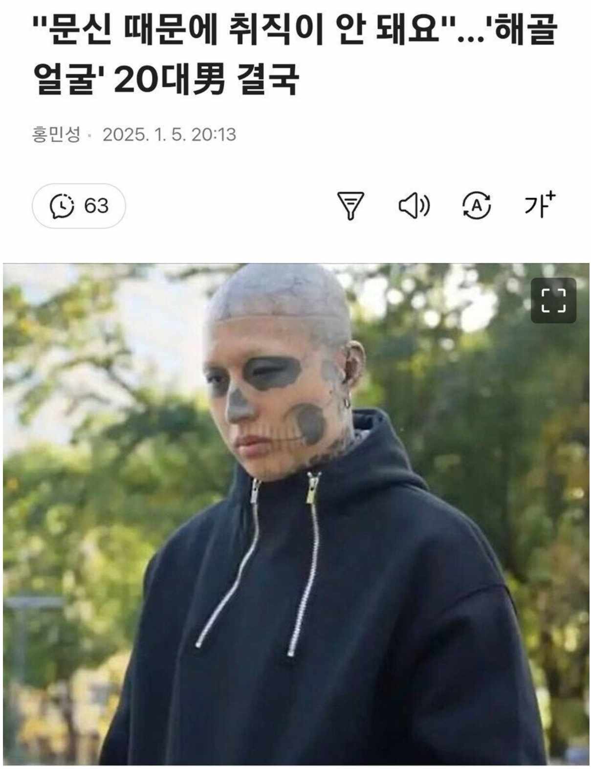 "ㅠㅠ 문신 때문에 취직이 안 돼는거 너무 억울해요"