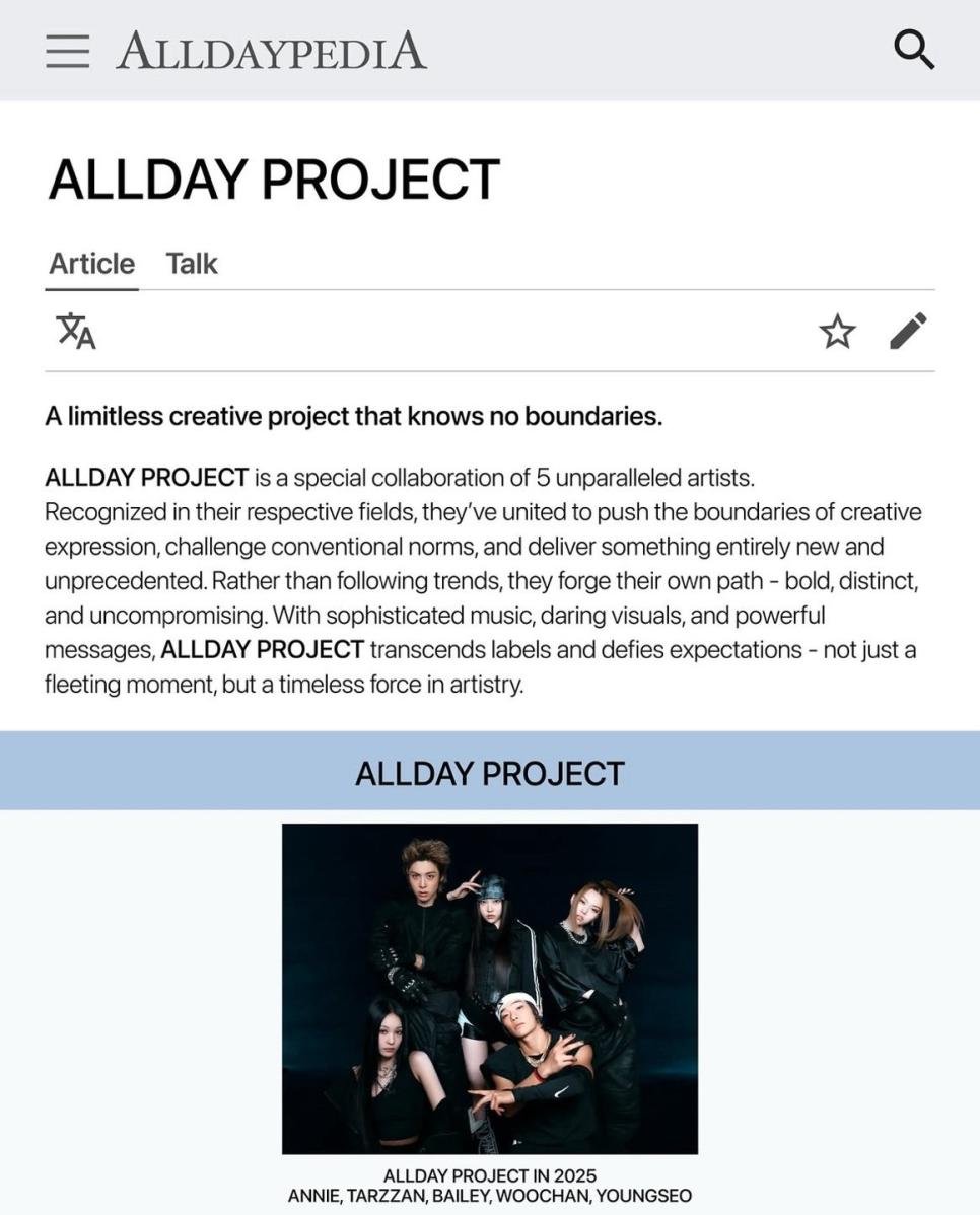 테디네 (아마도 프로젝트성) 혼성그룹 ALLDAY PROJECT 6/23데뷔 rh1 0 101 0 2025.06.09 09:45 미야오 데뷔조(로 알려졌던) 이명희 손녀 문서윤과 댄서 베일리석, 아일릿 데뷔조였다 데뷔 직전에 그만둔 영서, 쇼미 출연했던 우찬, 모델 타잔이미지에 문구를 봐서는 프로넥트성 그룹인거같고...사진이 테디시절 냄새가 풍풍나네요 노래도 그때감성으로 나올거같은 너낌입니다 0