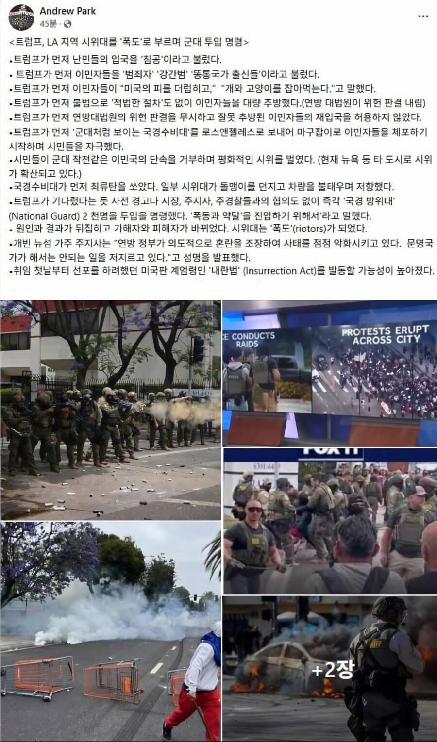 지금 LA 사태 트럼프 빠는 국내 '계몽'된 마가야로들 특 rh1 0 100 0 2025.06.08 16:30 지금 LA 사태에서 트럼프의 막장짓을 빠는 계몽된 마가야로들의 ㅂㅅ같은 생각과 달리지금 LA 주민들은 그 저능아들과 달리 그 ㅂㅅ들이 외치던 '정당한 시민저항권' 에 거의 부합할지도 모르는 상황이다.이 사실을 모르는건 계몽된 마가야로들 뿐이지만 그 저능아들이 그 사실을 인정할리가.... 0