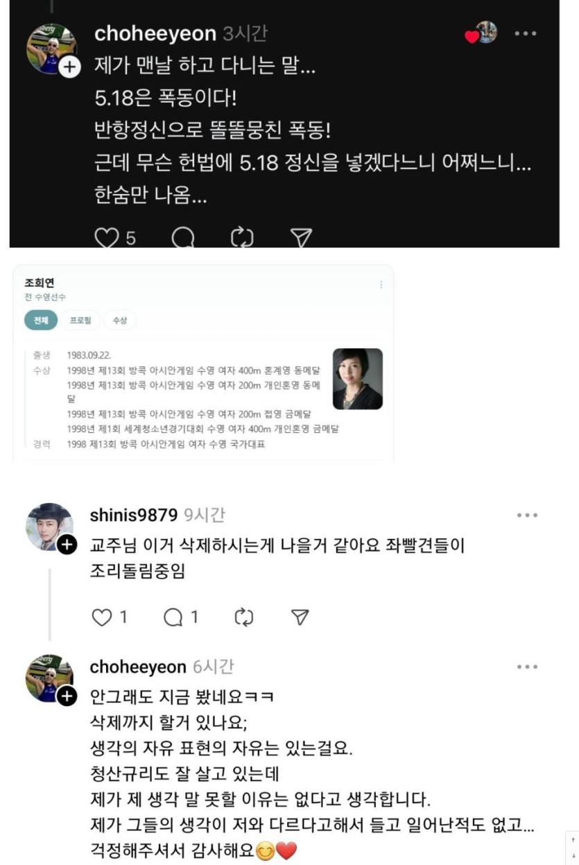 조희연 전 수영선수 - 518은 폭동이다