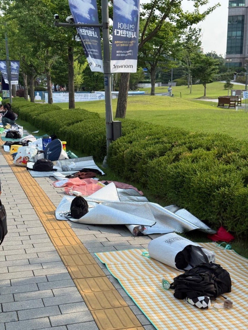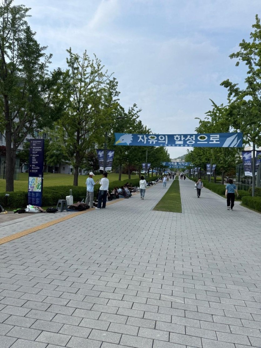 동문 축제에 라이즈 온다고 팬들이 돗자리 깔아놓음
