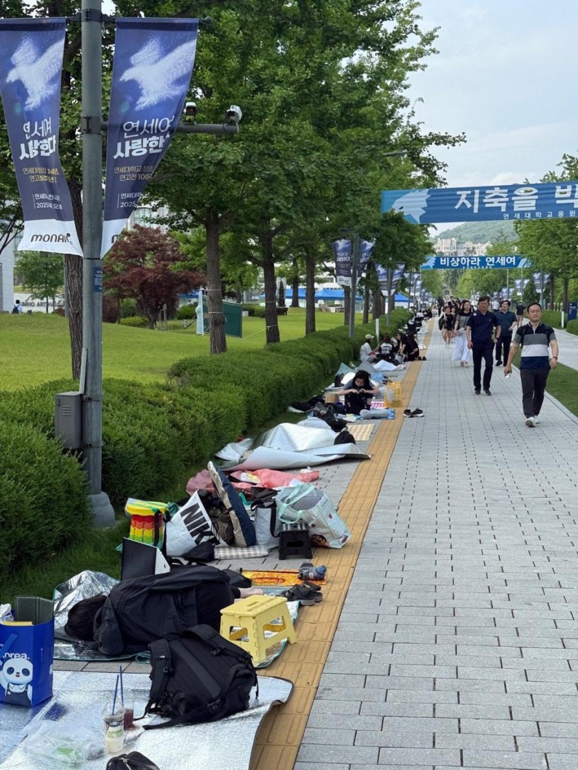 동문 축제에 라이즈 온다고 팬들이 돗자리 깔아놓음