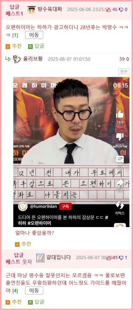 없는게 없는 무한도전 비운의 명작 <28년 후> rh1 0 98 0 2025.06.07 17:15 무도 좀비 특집 28년 후 분노 바이러스에 감염된 좀비를 피해 백신을 전달해야 함 사다리 근처를 서성이는 명수옹 Aㅏ…. 결국 다 잡히고 유재석 홀로 살아남았는데 인류를 구원할 백신.. 갑툭튀 좀비에 놀라 깨져버림 전설의 망작 좀비 특집 28분 후.. 시말서 엔딩 사다리를 걷어찬 과오를 씻으러 온 명수옹 이게 현실이 되네ㅋㅋㅋㅋ 없없무 ㄷㄷ ; 0