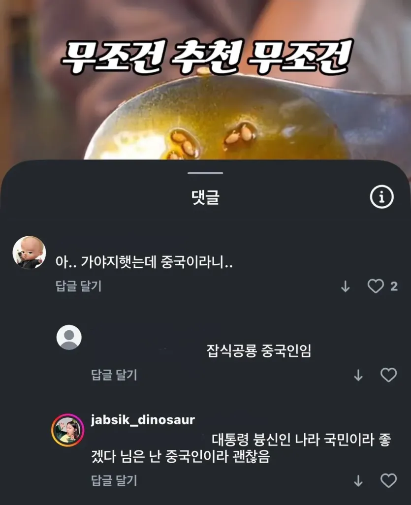 답변댓글로 중국인 인증 ㅎㄷㄷ