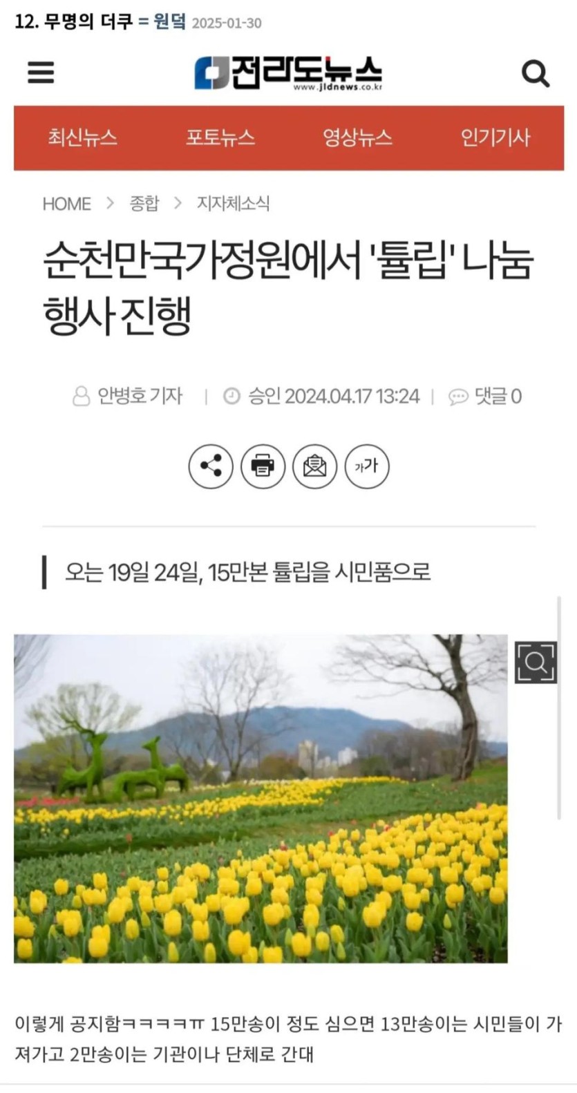 순천에 국가정원있자나 그거 꽃 엄청 많은거 시즌 바뀌면 그냥 버리는걸까 했거든