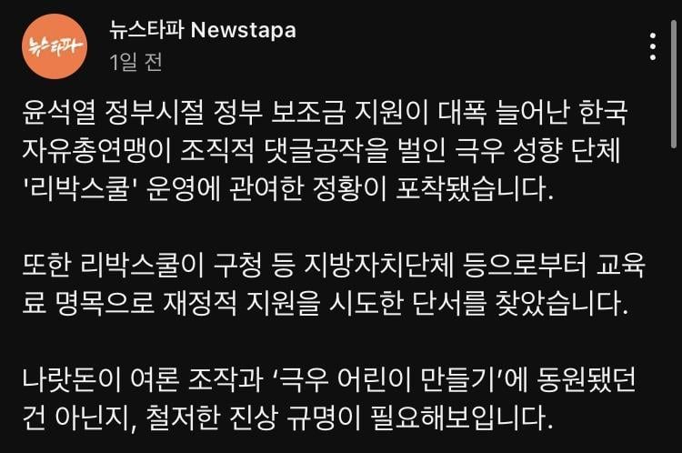 뉴스타파 : 한국자유총연맹이 리박스쿨 운영에 관여한 정황이 포착