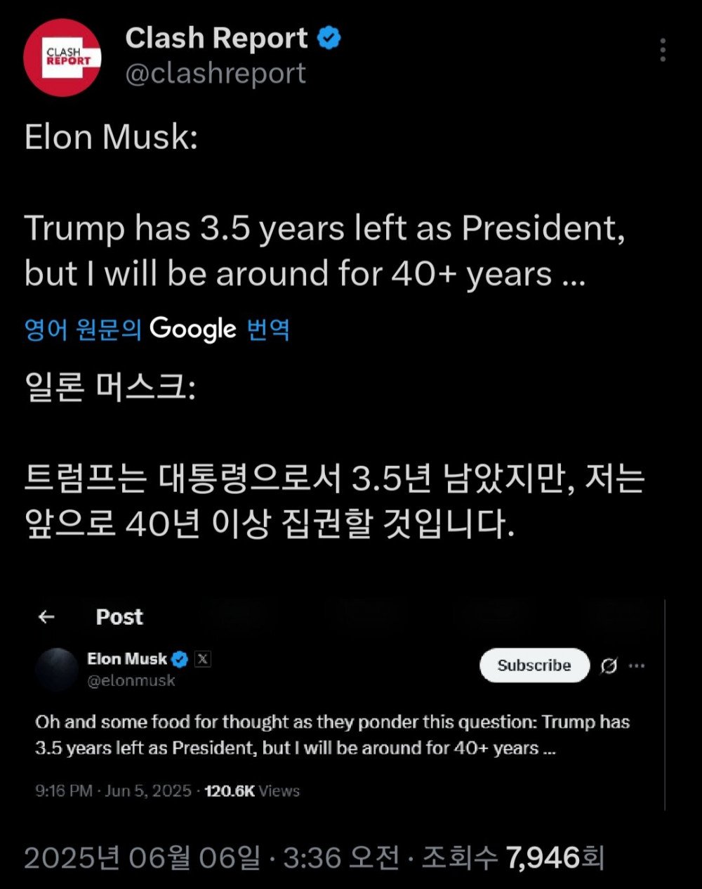 머스크:저는 앞으로 40년이상 집권 할 것입니다.