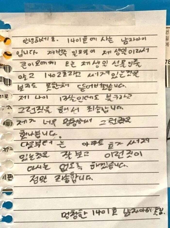실수로 옆집 택배를 뜯어본 아이의 사과문.jpg