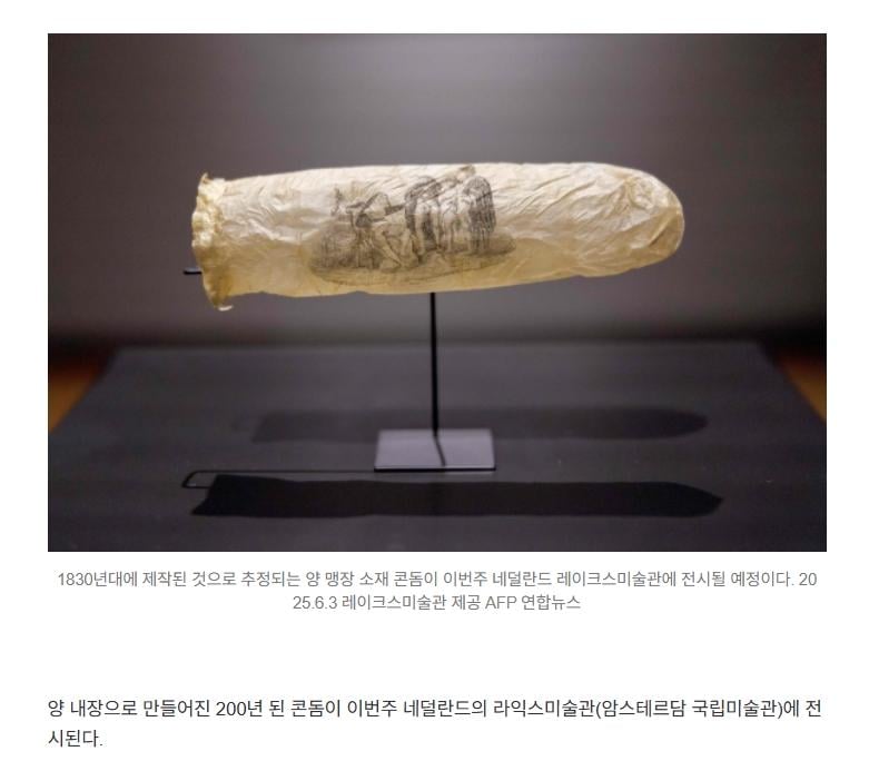 200년 된 20㎝ 길이 콘돔, 네덜란드 미술관 전시… 소재는 ‘양 내장