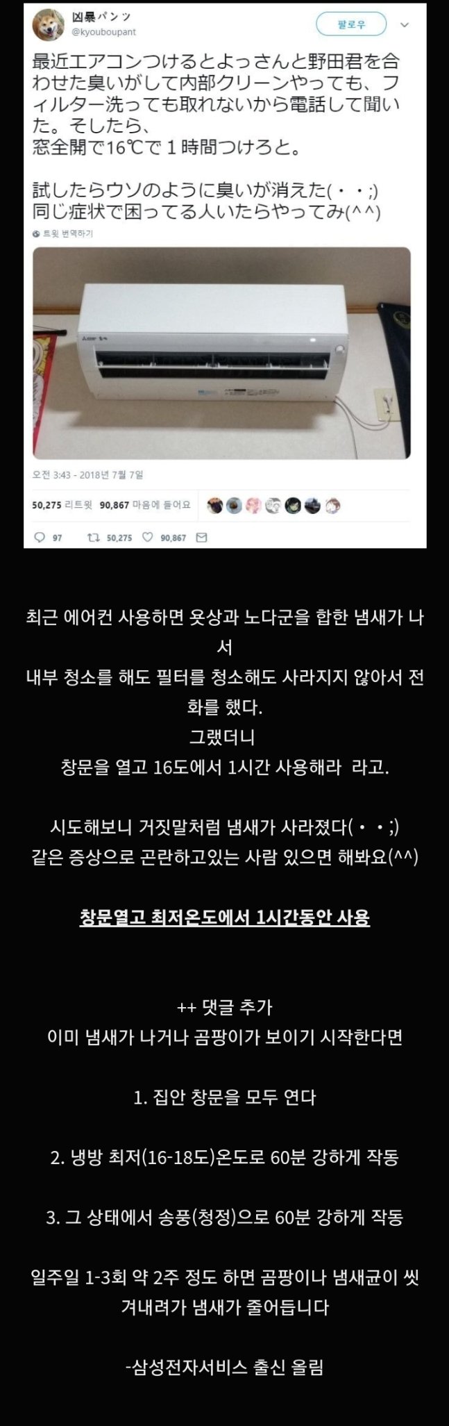일본 트위터 난리난 '에어컨 냄새 없애는 팁