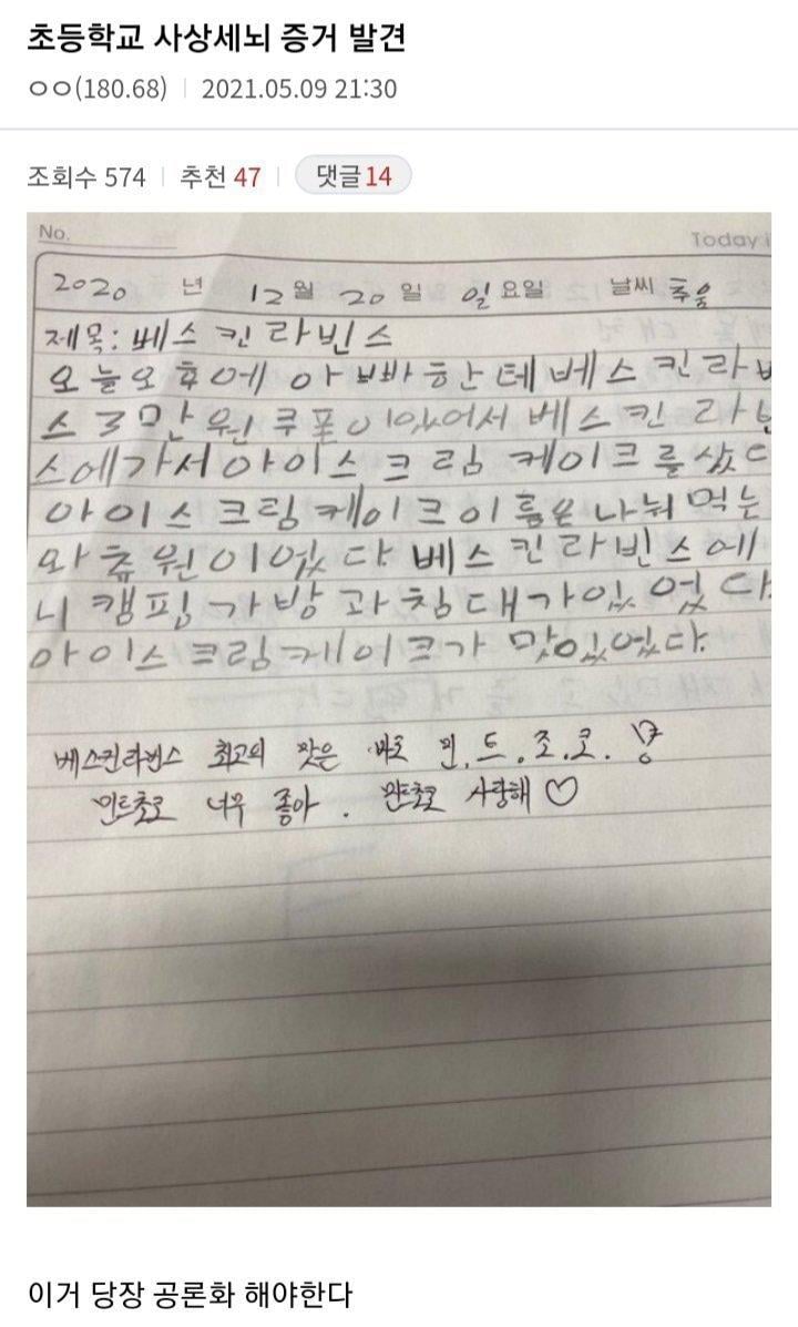 학생 일기장에 사상주입하는 교사 논란.jpg