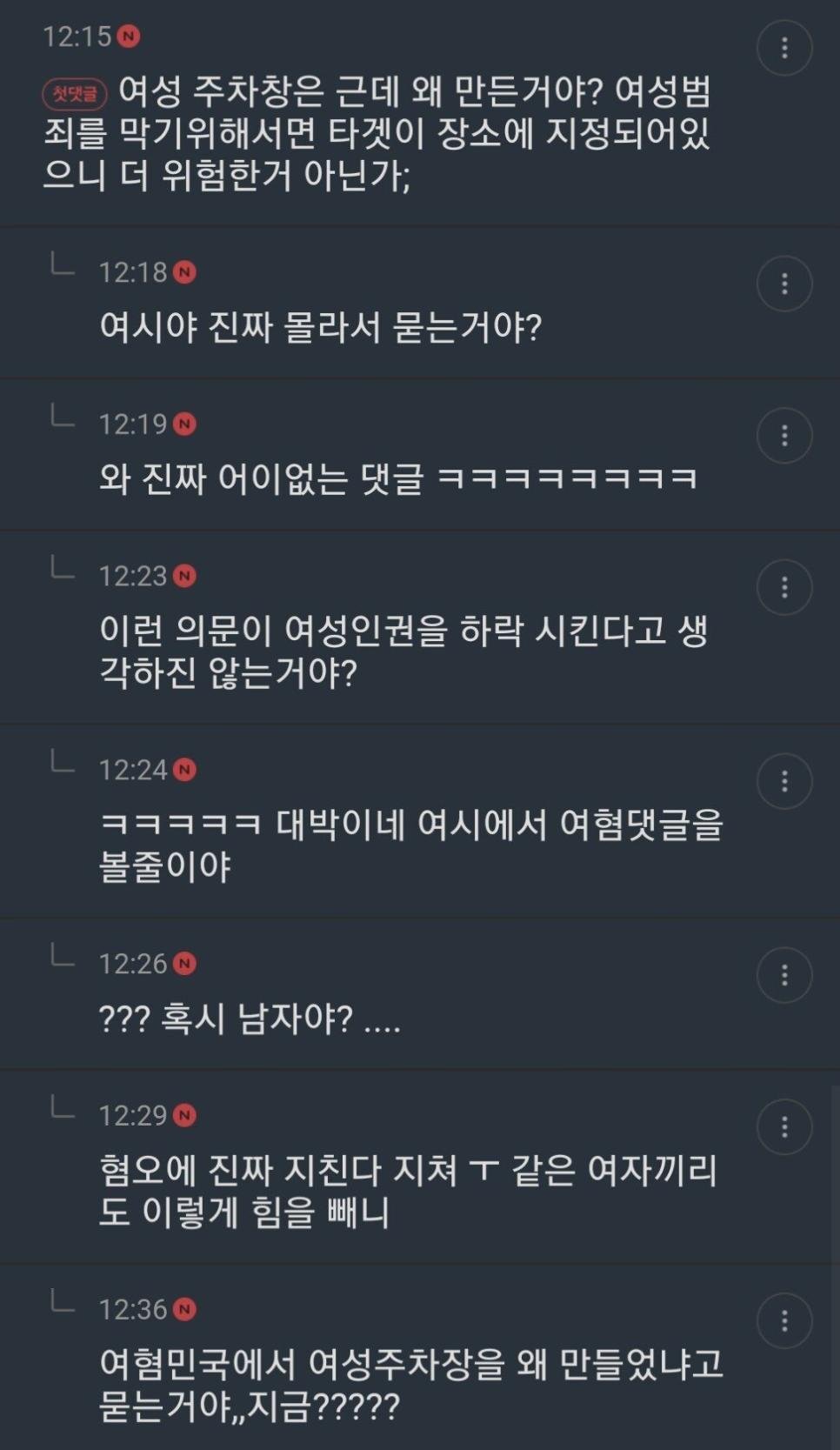 여성 주차장은 왜 만든거야?
