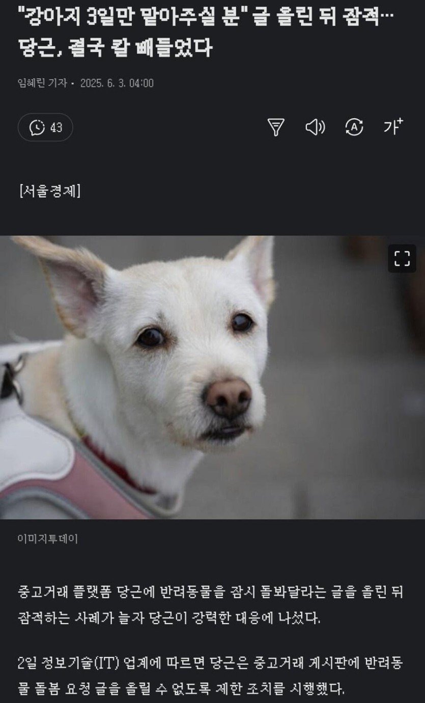 신종 동물 유기에 대응 나선 당근마켓 근황.jpg