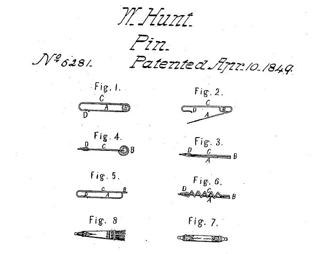 안전핀으로 특허를 받은 뒤 급전이 필요했던 헌트는이 안전핀의 특허를 단돈 400달러 (현재 가치 약 2천만원)에 판매해친구에게 빌린 15달러를 갚는데 사용한다.