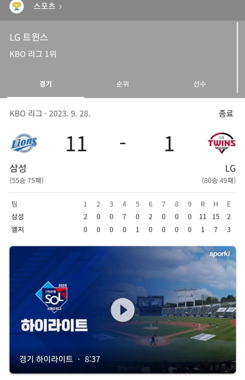 이날 경기 결과