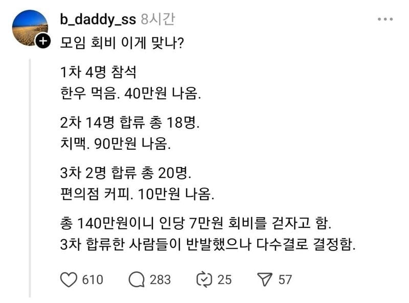 모임 회비 논란