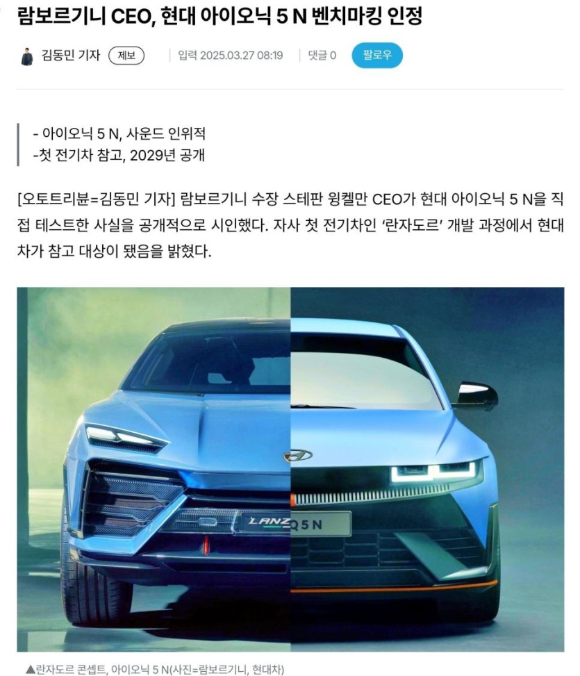 람보르기니 CEO, 현대 아이오닉 5 N 벤치마킹 인정