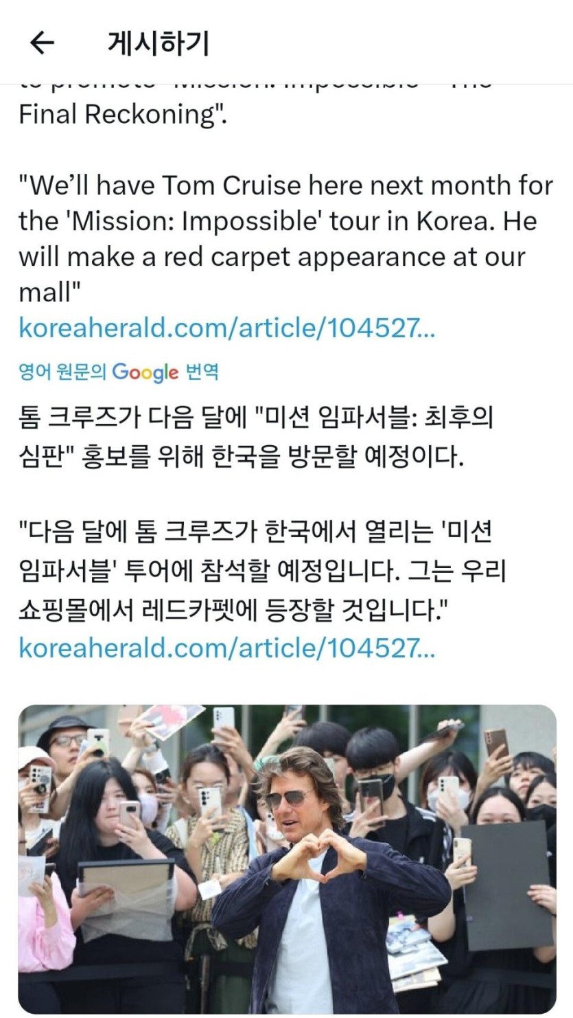 톰 크루즈 또 내한 예정 ㄷㄷㄷㄷㄷㄷㄷ