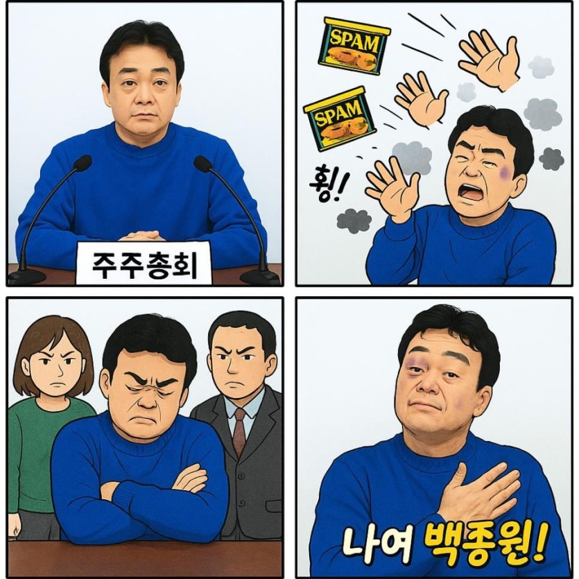 chatGPT로 만든 백종원 주주총회 4컷만화
