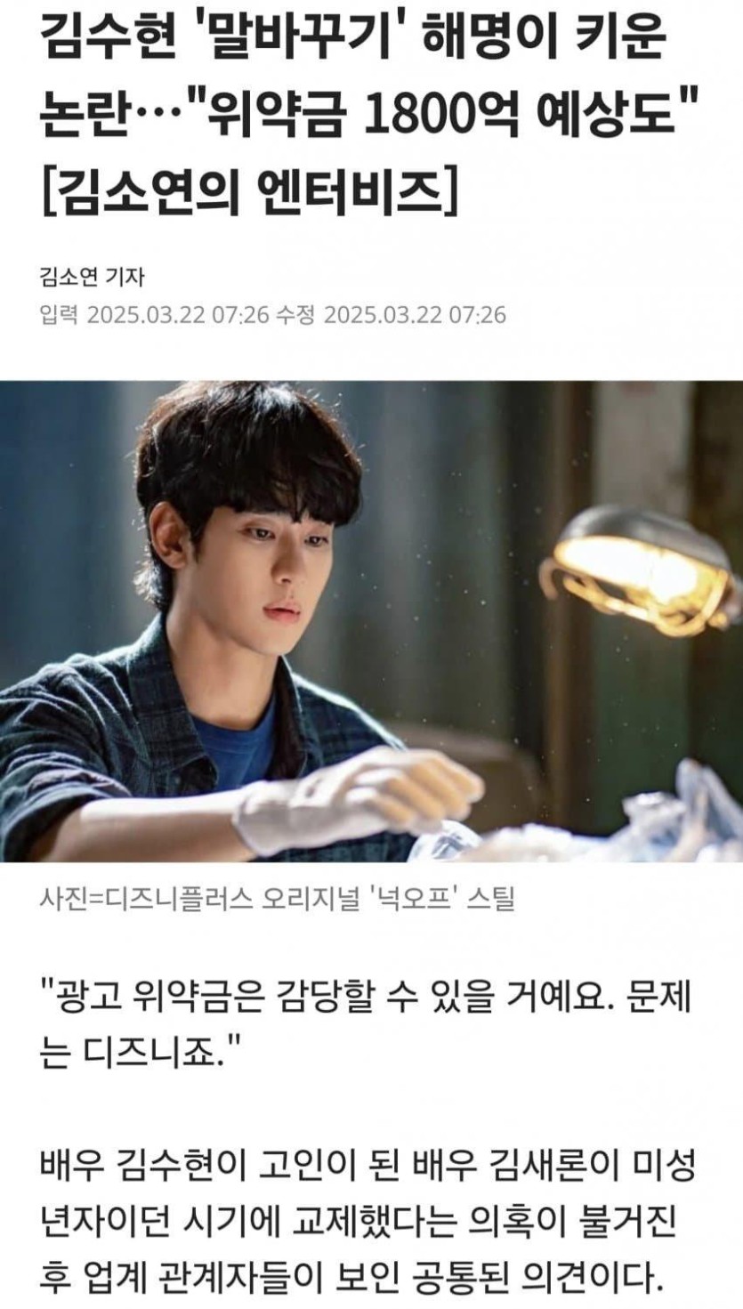 김수현 디즈니 위약금 1800억 예상