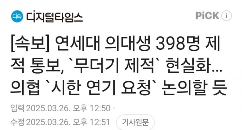 연대의대 398명 제적 통보 ㄷㄷㄷ