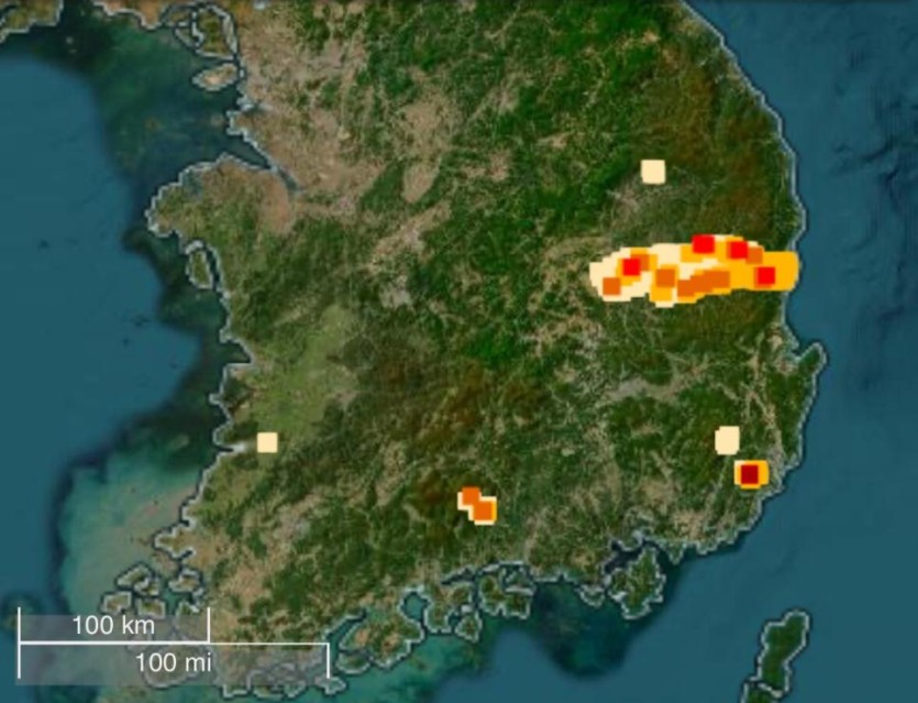 NASA 실시간 우리나라 산불 위성 사진 rh1 0 136 0 2025.03.26 11:45 https://firms.modaps.eosdis.nasa.gov/map/#t:tsd;m:advanced;d:24hrs;l:fires_goes_Him8,fires_goes_Met11,fires_goes_Met9,fires_goes_all,fires_goes_g16,fires_goes_g16frp,fires_goes_g18,fires_goes_g18frp,country-outline,earth;@130.3,56.9,6.5z 0