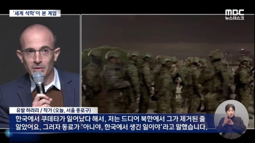 유발 하라리 (사피엔스 저자) 한국 계엄 사태 언급