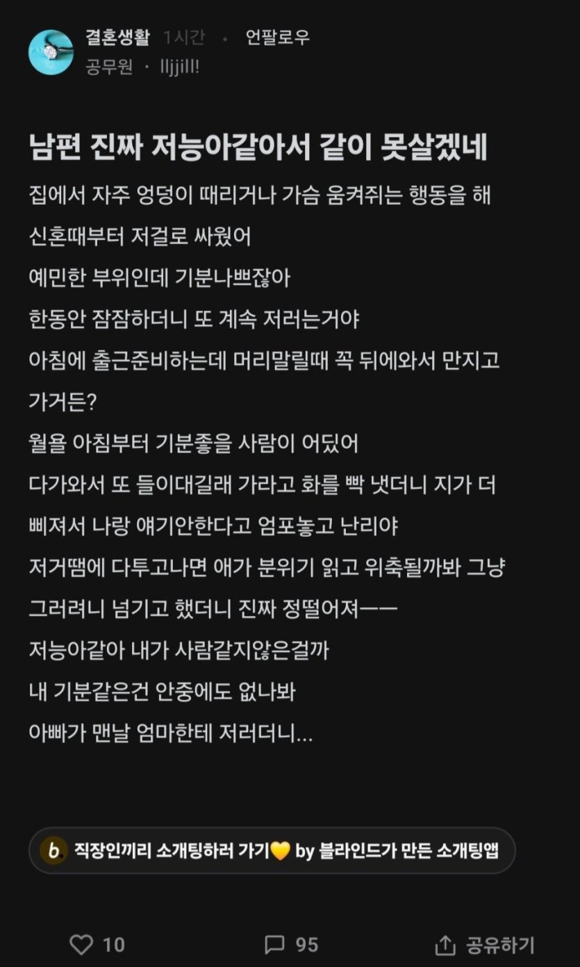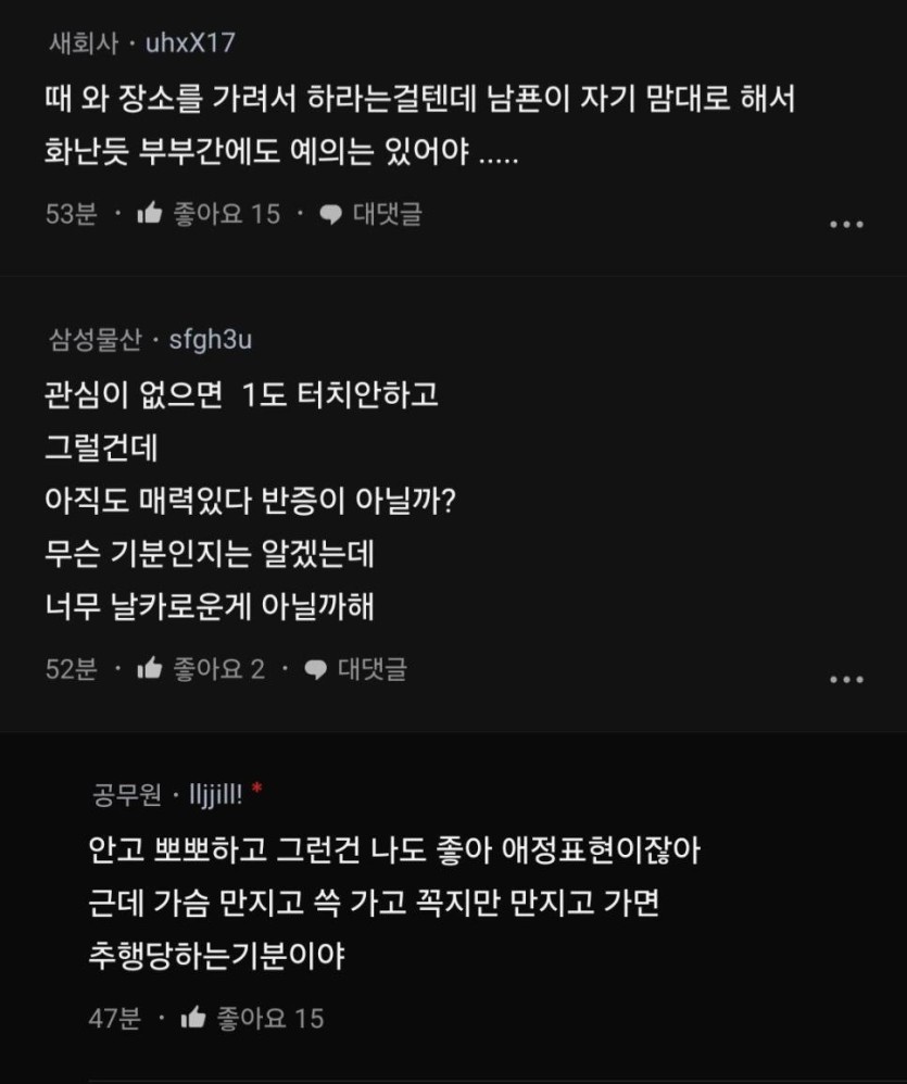 남편이 집에서 시도때도 없이 엉덩이 가슴 만져서 빡친 블라인