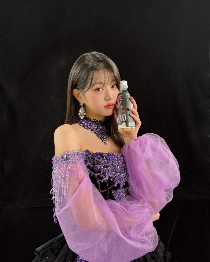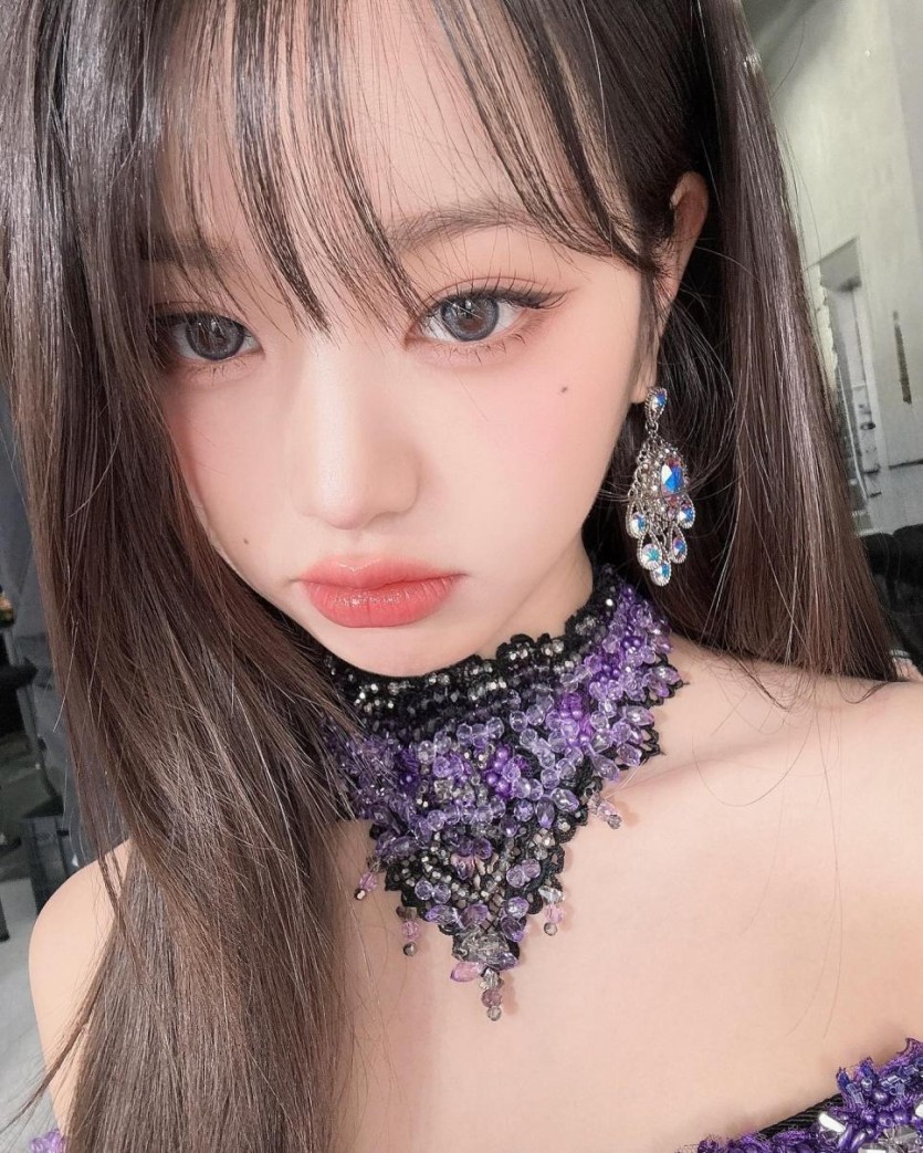 보랏빛 검정 란제리룩 아이브 장원영 매끈한 어깨 미모 - 인스타