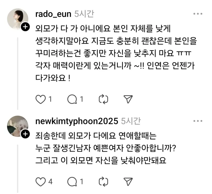 외모 컴플렉스 있는 사람 응원하면 생기는 일