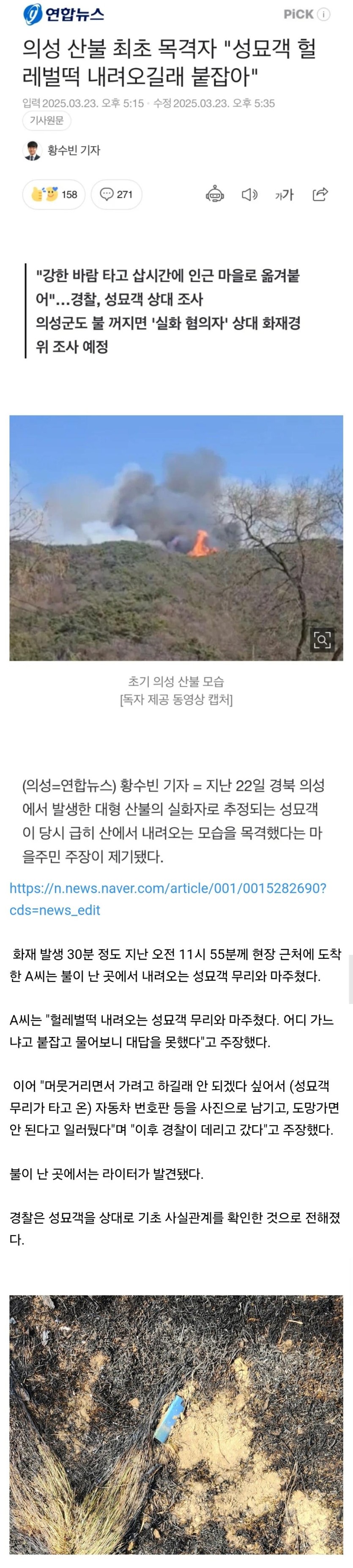의성 산불 실화 혐의자 자진신고가 아니라 주민에게 붙잡혀