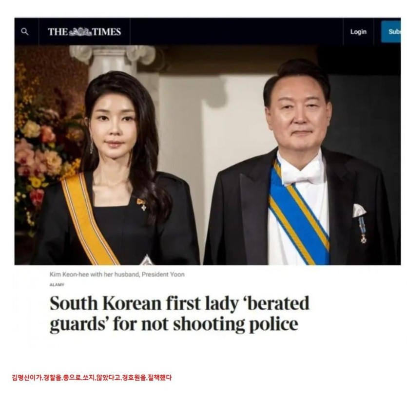 타임즈,한국 영부인 "경찰을 쏘지 않았다는 이유로 '경호원'을 질타했다" rh1 0 382 0 2025.03.23 22:15 한국 영부인 "경찰을 쏘지 않았다는 이유로 '경호원'을 질타했다"는 기사 타임즈에 실림. 0
