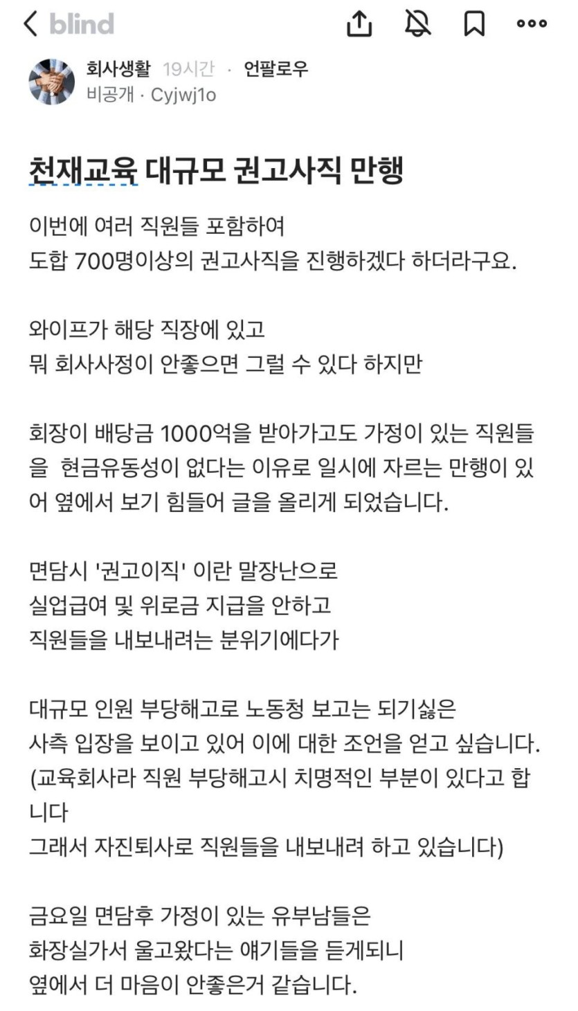 [기타] 천재교육 7백명 권고사직.blind