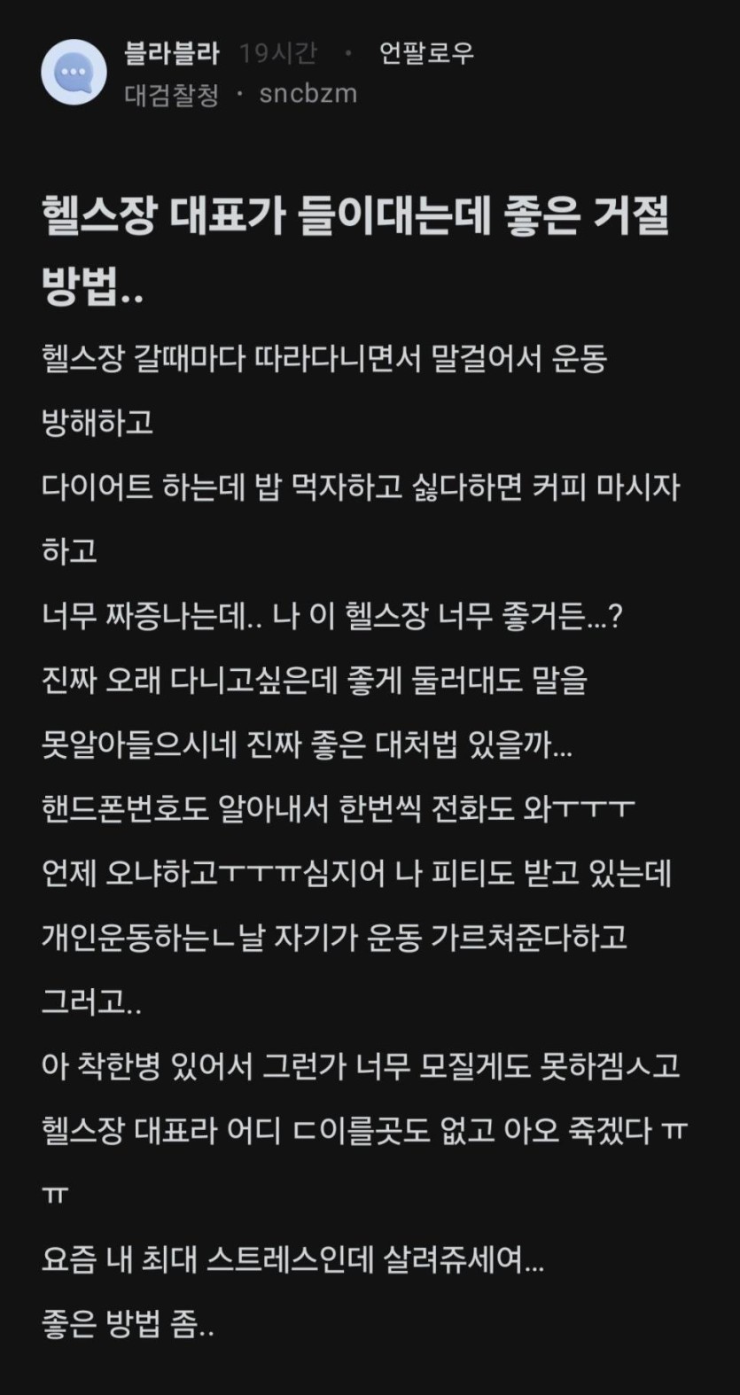 헬스장 대표가 들이댄다는 여자의 고민 해결법.jpg