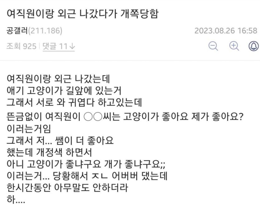 여직원이랑 외근 나갔다가 개쪽당함