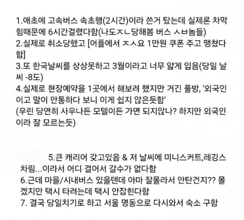 속초 가서 숙소 강제 캔슬 당하고 오열한 일본인