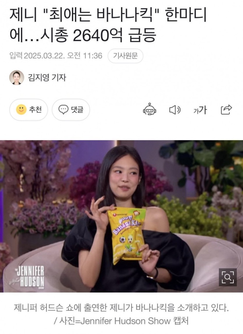 제니 "최애는 바나나킥" 한마디에…시총 2640억 급등 rh1 0 283 0 2025.03.22 19:15 https://naver.me/xq3sAhSs농심조차 인정 ㅋㅋㅋ다음주부터 주식장은 제니매매법 들어간다입만 열어봐라 .. 아주 그냥 풀매수 박는다 제니 "최애는 바나나킥" 한마디에…시총 2640억 급등 0