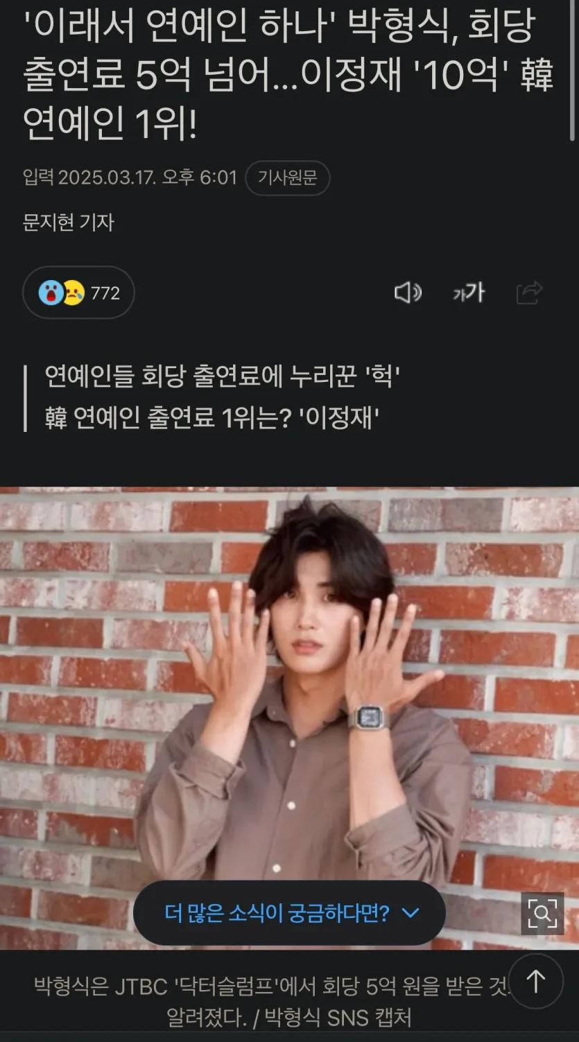 박형식, 회당 출연료 5억 넘는다