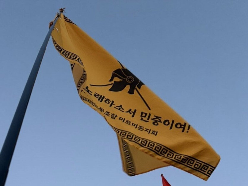 깃발 '분노를 노래하소서 민중이여'