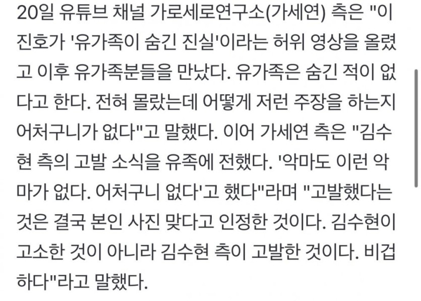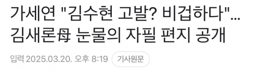 김수현 '성적 수치심 유발' 고소 선언 rh1 0 174 0 2025.03.21 09:15 김수현에게 고소당한 가로세로연구소 측 입장 악마도 이런 악마가 없다 비겁하다 근거를 제시해라 용납이 되지 않는다 김수현 측은 김새론 관련된 사진 제공 유출 등에 대해, 관련인들 고발 김수현 '성적 수치심 유발' 고소 선언 0