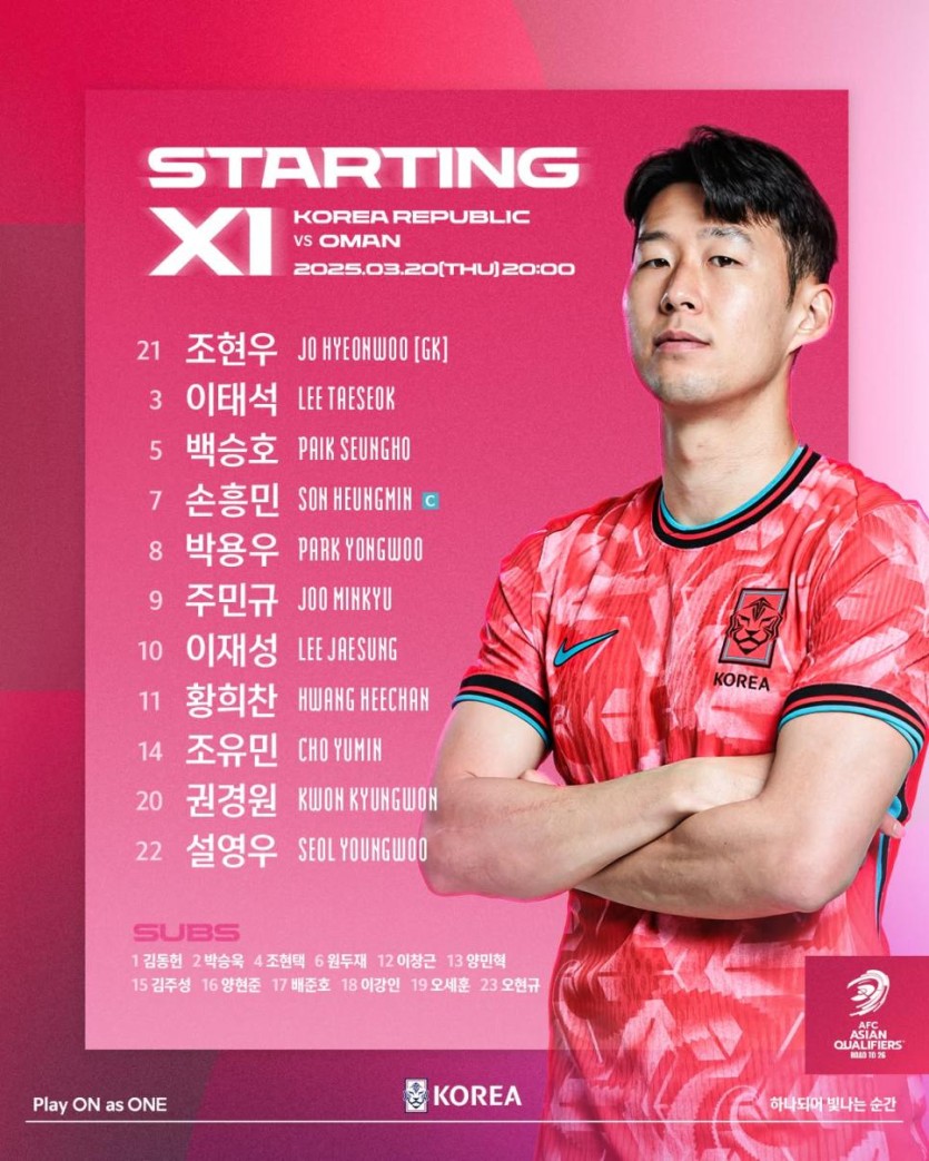 [오피셜] 오만전 선발라인업 공개 ㄷㄷ