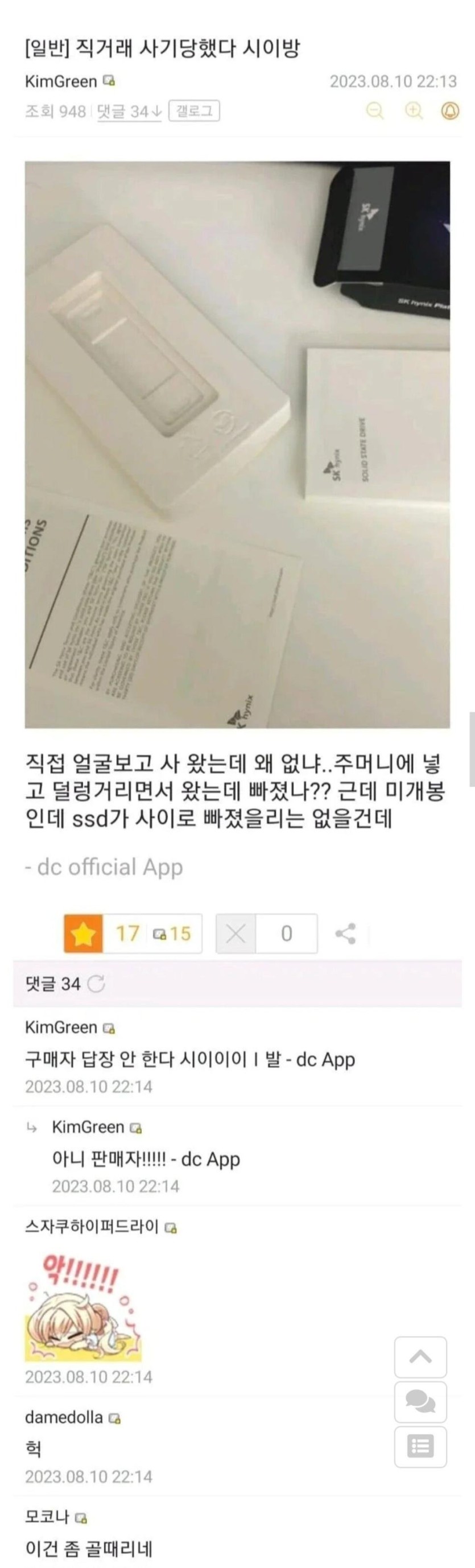 [유머] 미개봉 SSD 사기 당했다는 디시유저ㅋㅋ
